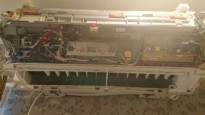 エアコンの前にこんな電子機器があると分解しないと洗えません。