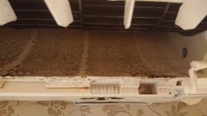 パナソニックの最新機種のお掃除機能付きエアコンも汚れていました!